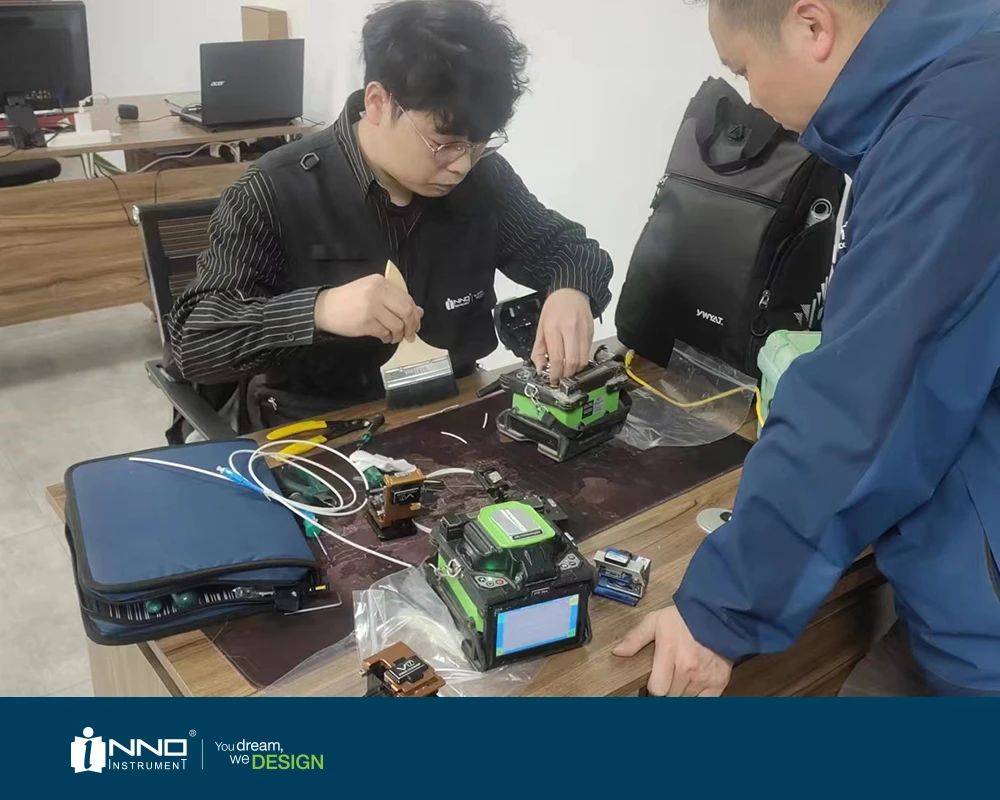 INNO INSTRUMENT正為美國一級代理商提供光纖熔接機培訓,其內容主要包括熔接技巧以及維修、維護技巧。為帶給客戶更好的體驗,培訓內容中包括技術交流及實操演練,旨在幫助客戶加深對 INNO 熔接機的使用印象。