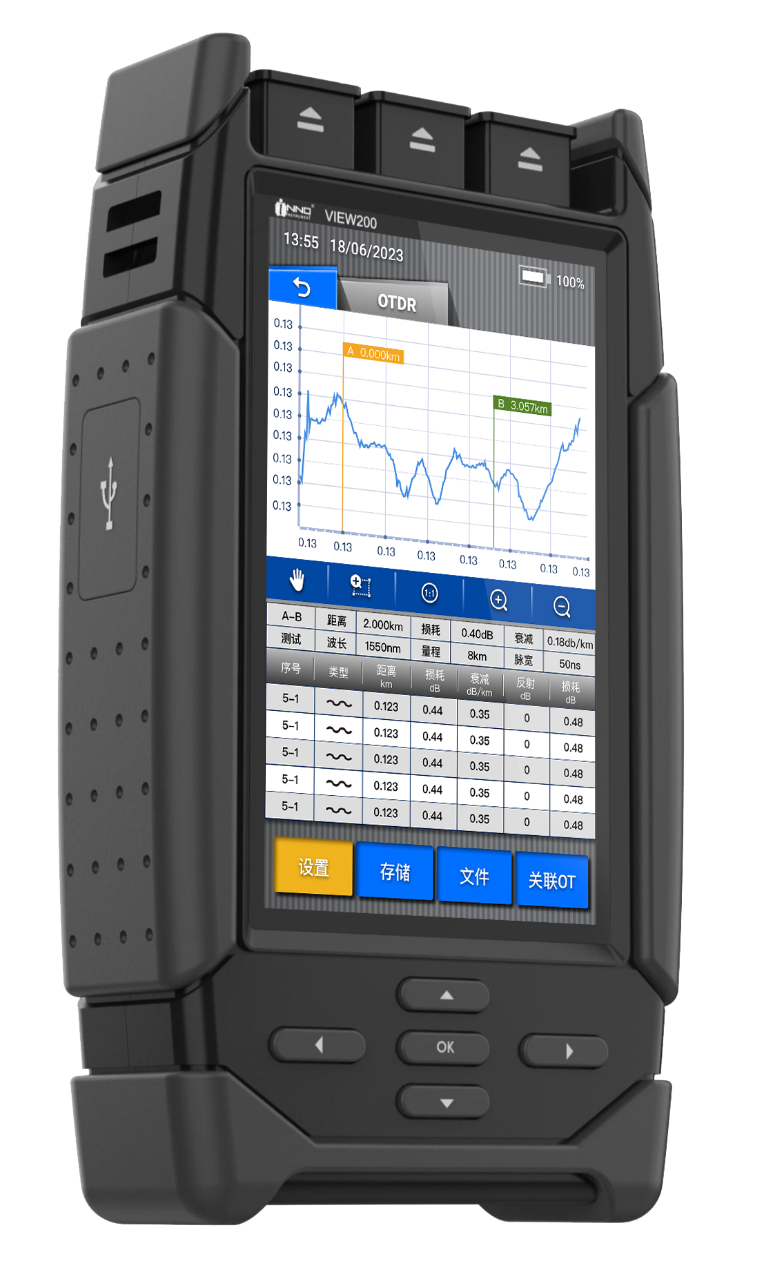 OTDR VIEW200 采用 4.3 寸高清顯示屏,UI 操作界面簡單,集成 OTDR,穩定光源,光功率計,紅光源等多種功能,支持 1310/1550 兩種波長;觸屏加按鍵皆可使用,即方便現場操作,又方便實時觀察數據;便攜式 OTDR,設計小巧,功能強大,采樣點數多,可從 16K 到 128k;大電池容量,12 小時超長測量時間,待機時長可達 20 小時,高效保障野外測試維護作業,可廣泛用于光纖通信系統的工程施工、線路維護測試及緊急搶修、光纖光纜的研制與生 產測量等領域。